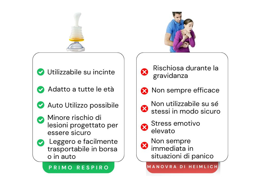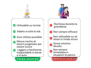 A differenza delle manovre tradizionali, complesse e non sempre efficaci, potrai usare PrimoRespiro senza difficoltà e senza avere competenze mediche.